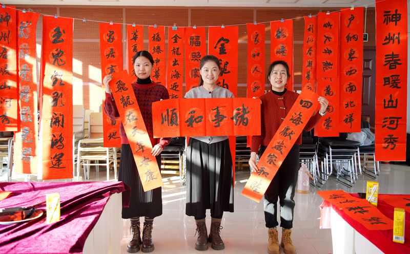 后續(xù),在承德縣廣場(chǎng)、張營(yíng)村、西坎村、東溝門村,書寫了承載“諸事和順”祝福的對(duì)聯(lián)、福字,為全縣城居民和鄉(xiāng)鎮(zhèn)村民送去一份祝福。