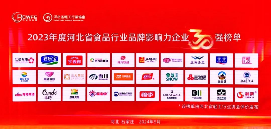 開幕式上發(fā)布了“2023年度河北省食品行業(yè)品牌影響力企業(yè)30強榜單”,河北衡水老白干酒業(yè)和河北板城酒業(yè)位列其中。