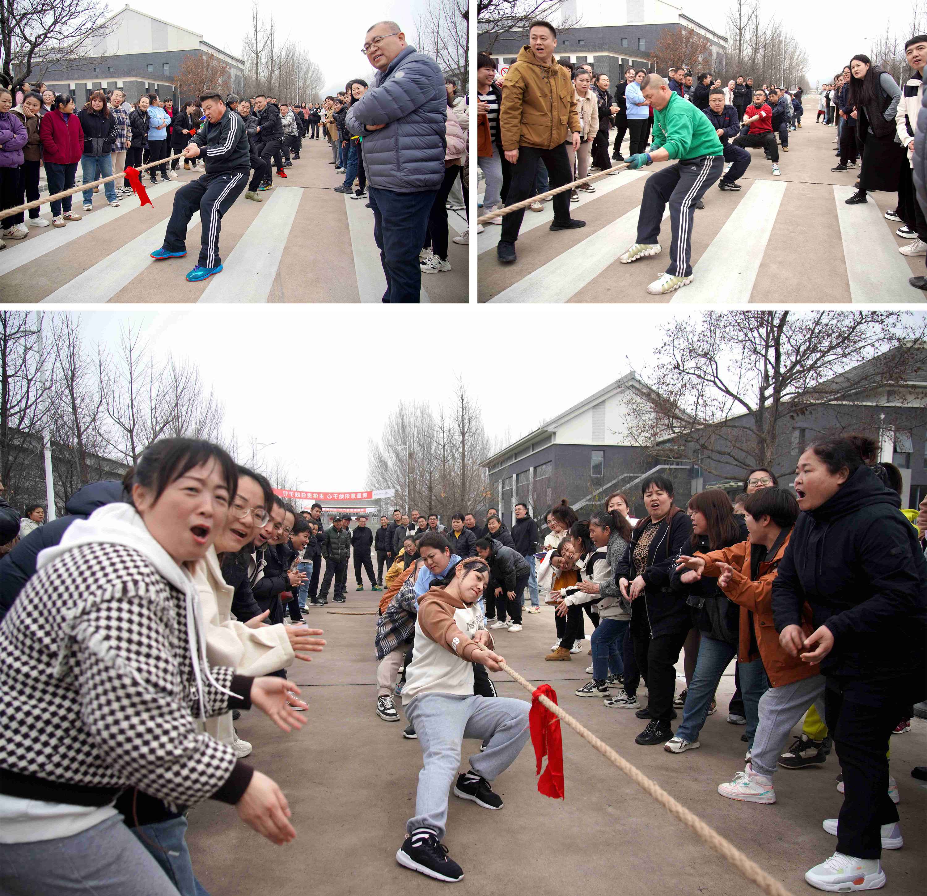 拔河比賽中,雙方隊伍展開激烈較量,團隊中每個人都全力以赴,盡力為自己的隊伍爭取勝利;