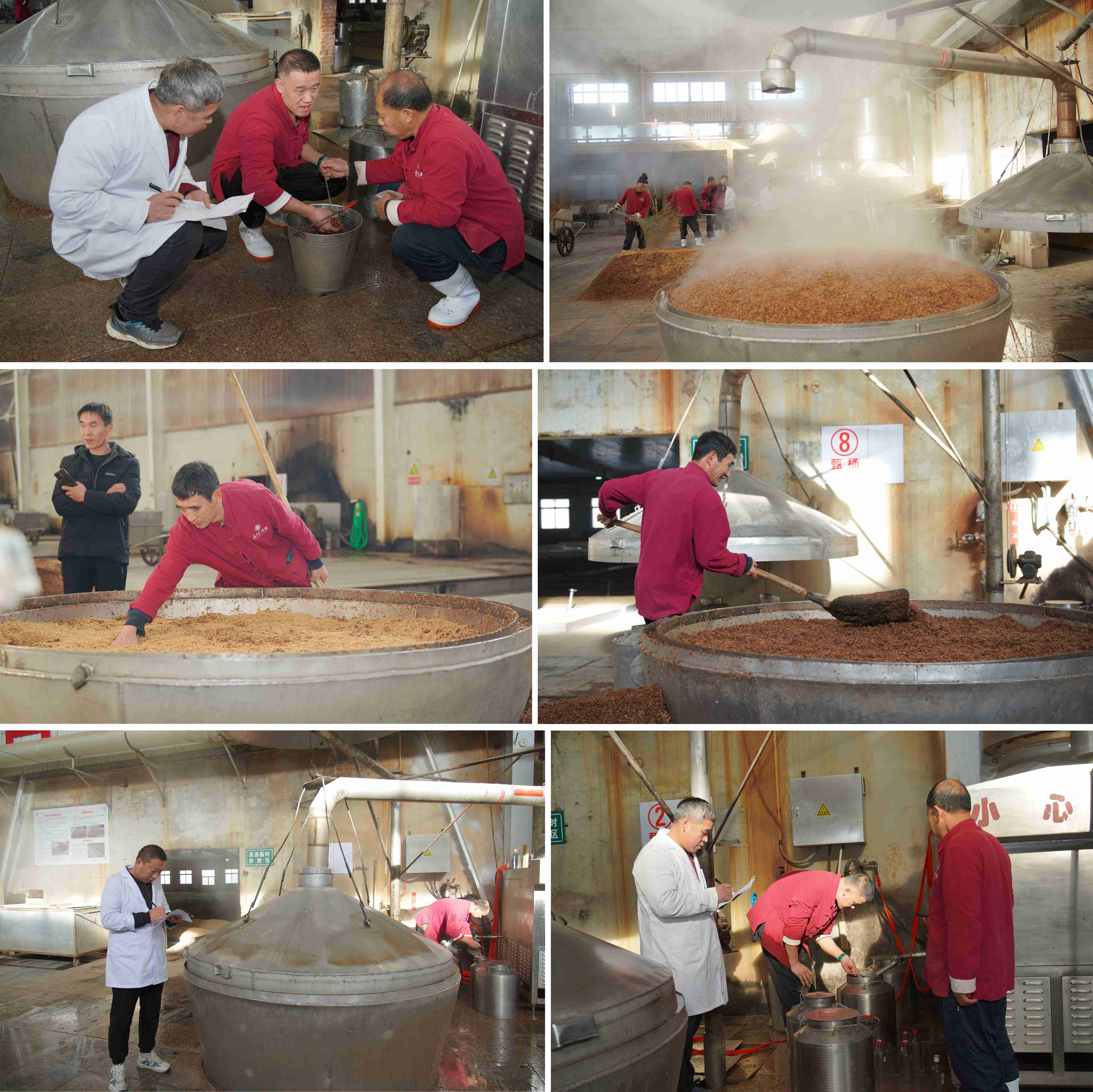 裝甑、量質(zhì)摘酒……實踐技能比賽中,在公司釀造車間,一派忙碌景象,股股濃郁的酒香撲鼻而來。上甑講究“輕、松、薄、準(zhǔn)、勻、平”;出酒時,釀酒工人要根據(jù)出酒時間及經(jīng)驗將酒按照酒頭、酒中、酒尾進行分級。
